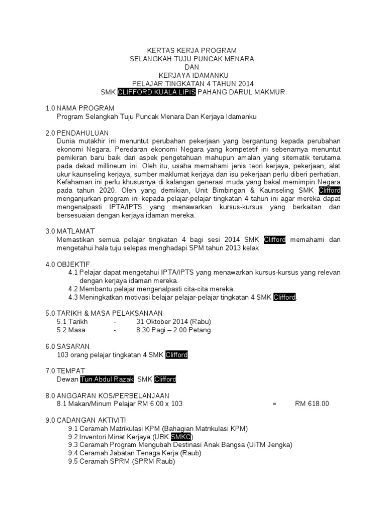 Contoh Kertas Kerja Program Kerjaya